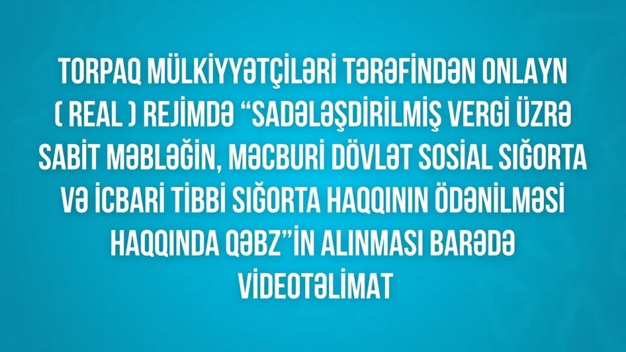 У нас вы можете скачать бесплатно SADƏLƏŞDİRİLMİŞ VERGİ,MDSS,İTS ÖDƏNİŞLƏRİ HAQQINDA SABİT QƏBZİN ONLAYN ALINMASI – ADDIM-ADDIM İZAH. или посмотреть видео с ютуба в максимальном доступном качестве.