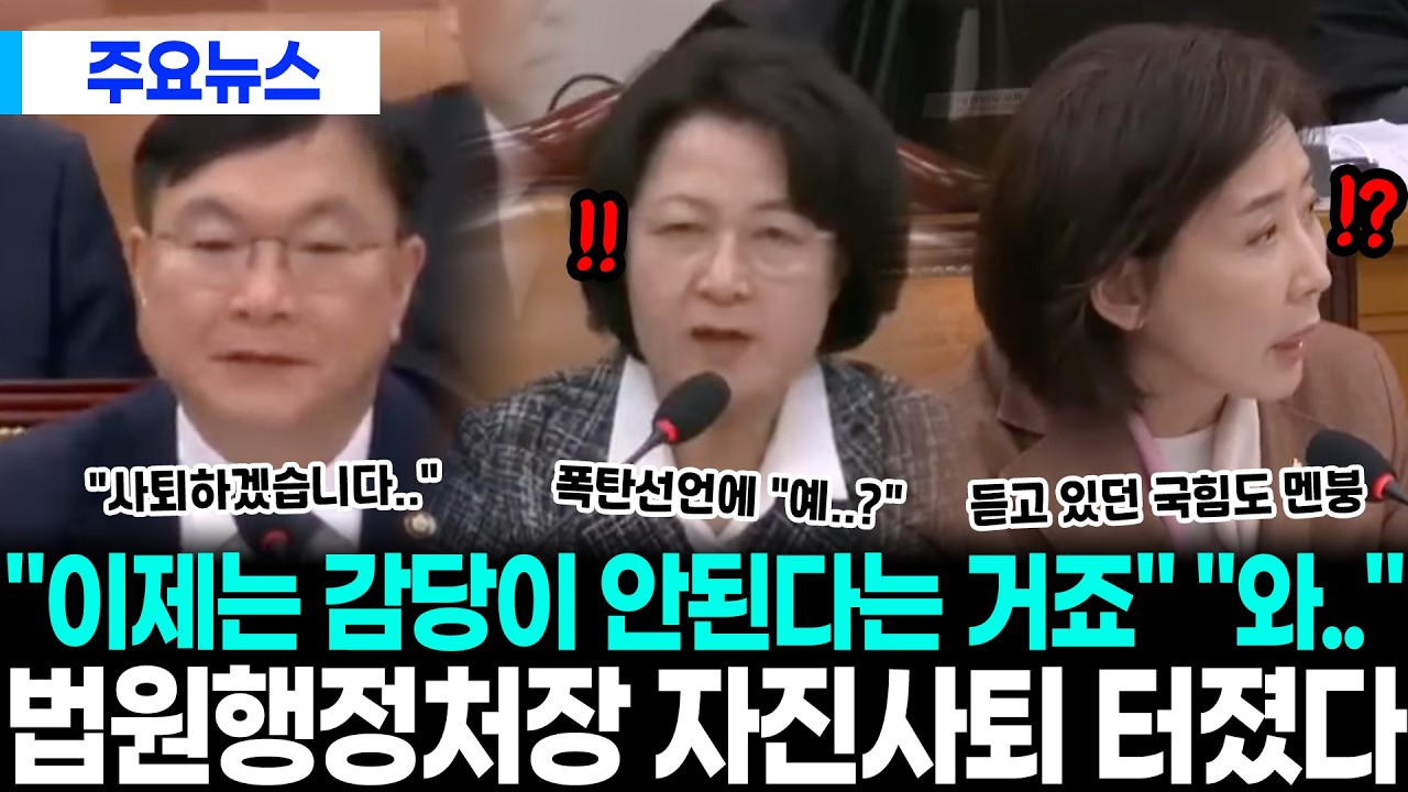 • "이제는 감당이 안 된다는 거죠" "와.." 법원행정처장 결국 자진사퇴 터졌다.. 생각지도 못한 폭탄선언에 법사위 초토화, 듣고 있던 국힘 멘붕 난리났다