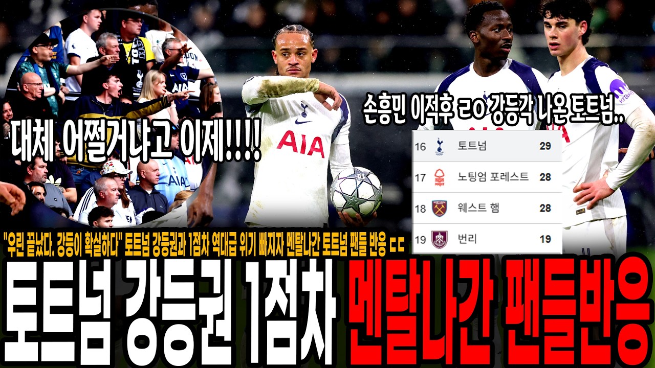 У нас вы можете скачать бесплатно [속보] 토트넘 진짜 X됐다 손흥민 이적후 진짜 강등각 ㄷㄷ 이제 강등권과 1점차! 노팅엄 무승부, 웨햄 승리 강등 경쟁팀들 승점 추가! 진짜로 강등 현실화되고 있는 토트넘 상황 или посмотреть видео с ютуба в максимальном доступном качестве.